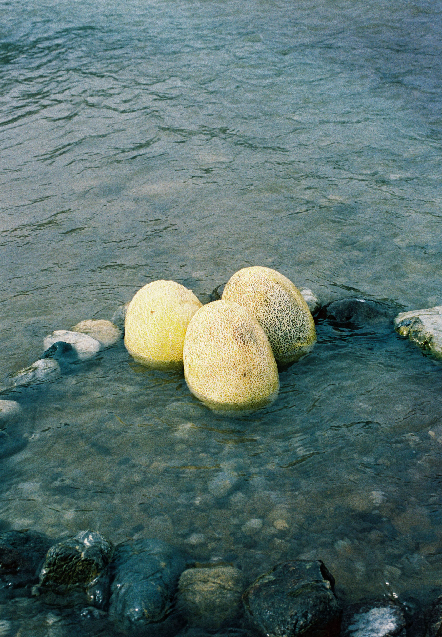 This is where a sisterly coterie of young girls go to cool down in seclusion, running away from urban life’s social norms and biases. They are driven by freedom to be themselves. As one does, they take one of the easily recognizable and ever-present Uzbekistan manufactured Daewoo cars, belonging to someone’s father. Roadside along their way, they buy qatiq yoghurt to serve in lieu of sunscreen and homegrown melons that they will keep cool under rocks at their destination. They stay the night outside of the city by themselves. |